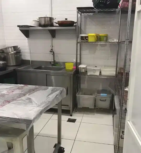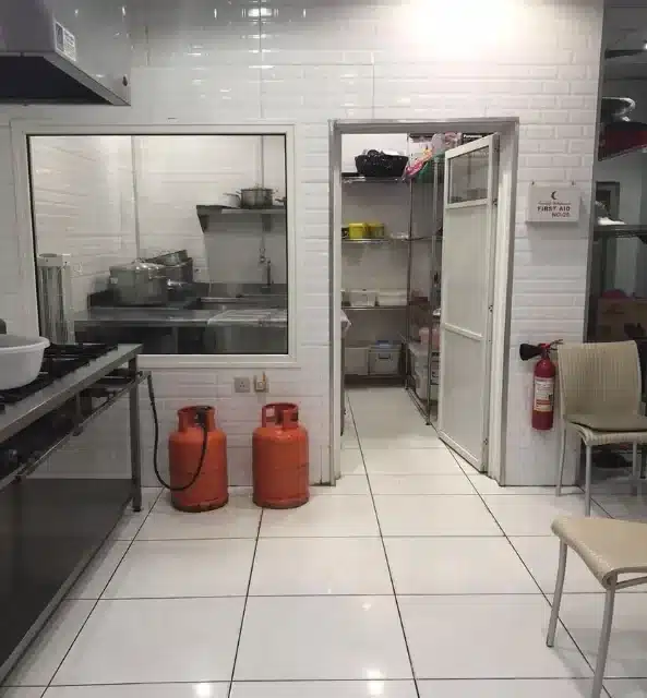 • محتويات المكان: سواق، سيارة، 4 عمال، أنابين غاز، طفاية حريق، كاميرات مراقبة داخلية وخارجية، مكييف سبليت، طاولة 4 شعلات، طاولة تحضير استيل، فرن كهربائي متوسط الحكم، جهاز شعلة لتسوية صواني الورق العنب، عجانة. شفاط، صواني ومعدات طبخ كاملة، أرفف وستاندات ستيل، حوض ستيل .
