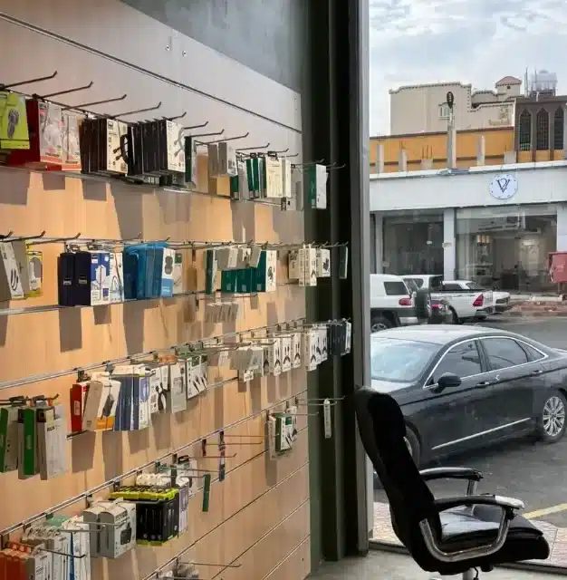 • محتويات المكان: بضاعة كاملة (شواحن، وصلات، جرابات، سماعات، الخ)، نظام كاشير كامل بنظام مبيعات (رواء) بالضمان، كاميرات مراقبة داخلية وخارجية وشاشة عرض، طفاية حريق، مدخل زجاجي، ديكور وإضاءة، ستاندات وأرفف، لوحة محل.