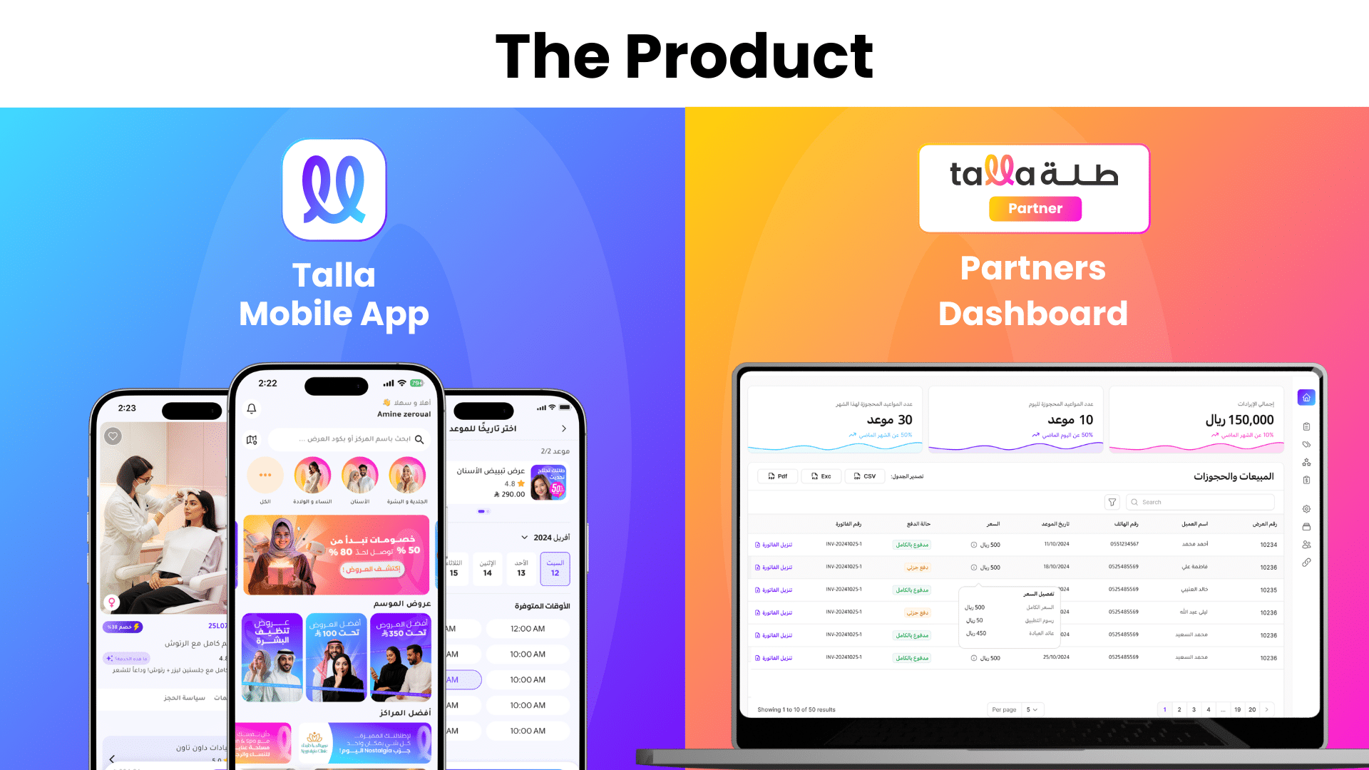 Talla is an integrated Saudi digital marketplace targeting the self-care and aesthetic services sector across Saudi Arabia. The platform connects customers with clinics, laser centers, dental clinics, spas, and skincare providers through a unified mobile application enabling offer discovery, confirmed bookings, and flexible payments.